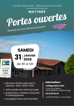 Les équipes du collège vous accueilleront samedi 31 janvier 2026 de 9h à 12h.