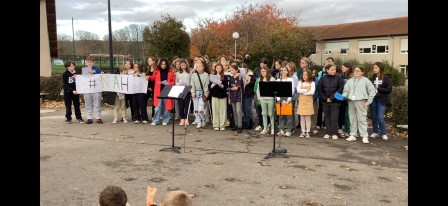 Ce jeudi 6 novembre, à l’occasion de la Journée nationale de lutte contre le harcèlement, les 43 élèves inscrits à la chorale ont interprété avec succès trois chants. L’ensemble du collège félicite chaleureusement les élèves pour cette belle parenthèse musicale.