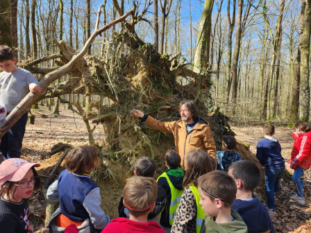 Jeudi 19 mars, nous sommes allés dans la forêt de Bellême. Il fallait marcher. Nous avons joué : nous avons construit des cabanes. Nous avons aussi écrit des poésies. Le midi nous avons pique-niqué. Après, nous avons eu une récré. Avec Alain nous avons fait plusieurs activités sur les arbres. Nous avons vu un arbre déraciné.