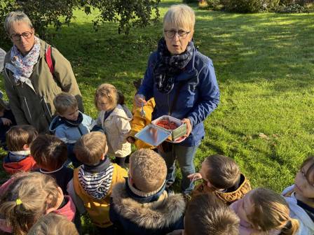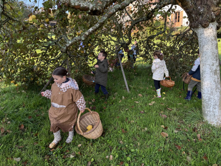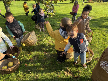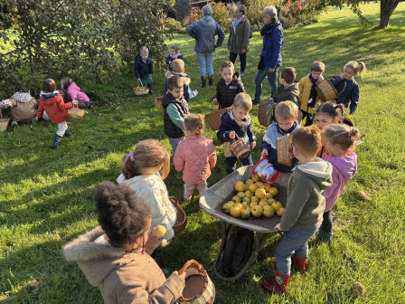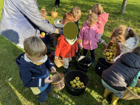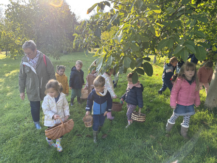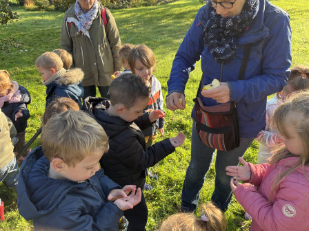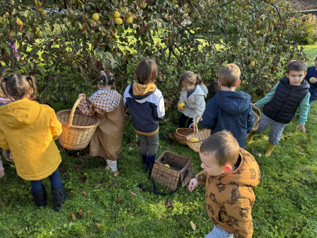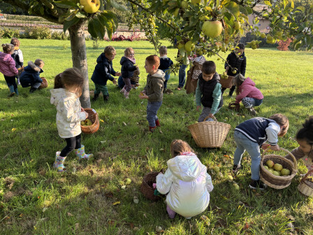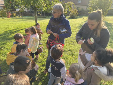 Nous nous sommes ensuite rendus sous le pommier pour ramasser et goûter ses pommes.