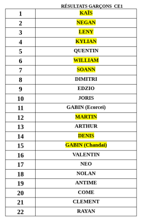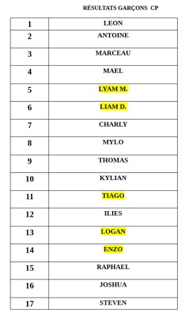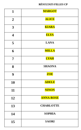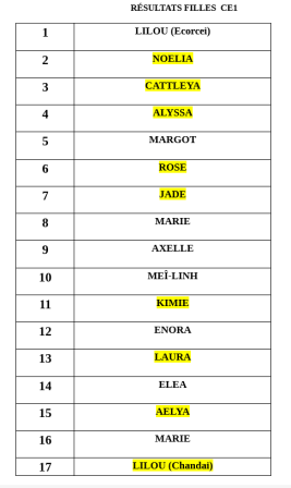 Voici les résultats de chaque course : bravo à tous les participants ! Tous ont reçu une médaille pour les féliciter de leur investissement dans la course.