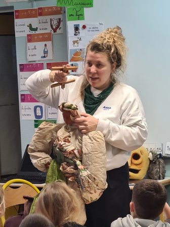 Semaine artistique à l'école : Les élèves ont eu la chance de travailler toute la semaine avec Coline ESNAULT, marionnettiste, originaire de Chandai, qui a fondé sa compagnie "La bagarre Cie".