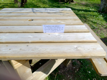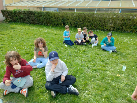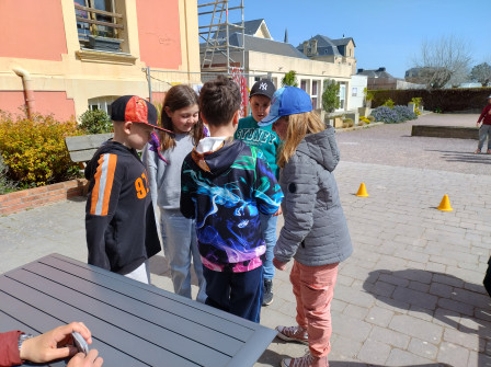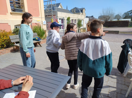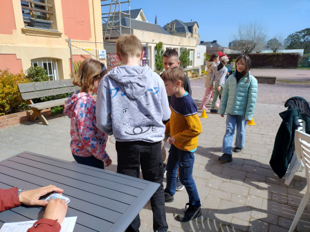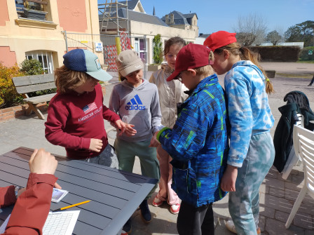 Après un dernier repas et une salve d'applaudissements pour les cantiniers et cantinières, nous commençons la dernière activité du séjour. Un jeu de piste est organisé pour nous permettre de réinvestir ludiquement tout ce que nous avons appris durant cette semaine.