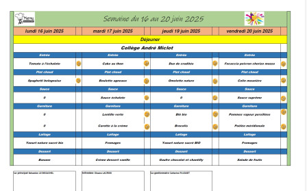 Menu de la semaine du 16 au 20 juin 2025