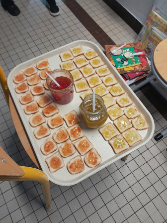 Pour la semaine du goût, des toutes petites tartines ont été distribuées à tous les élèves, aux maîtres et aux maîtresses de l'école.
