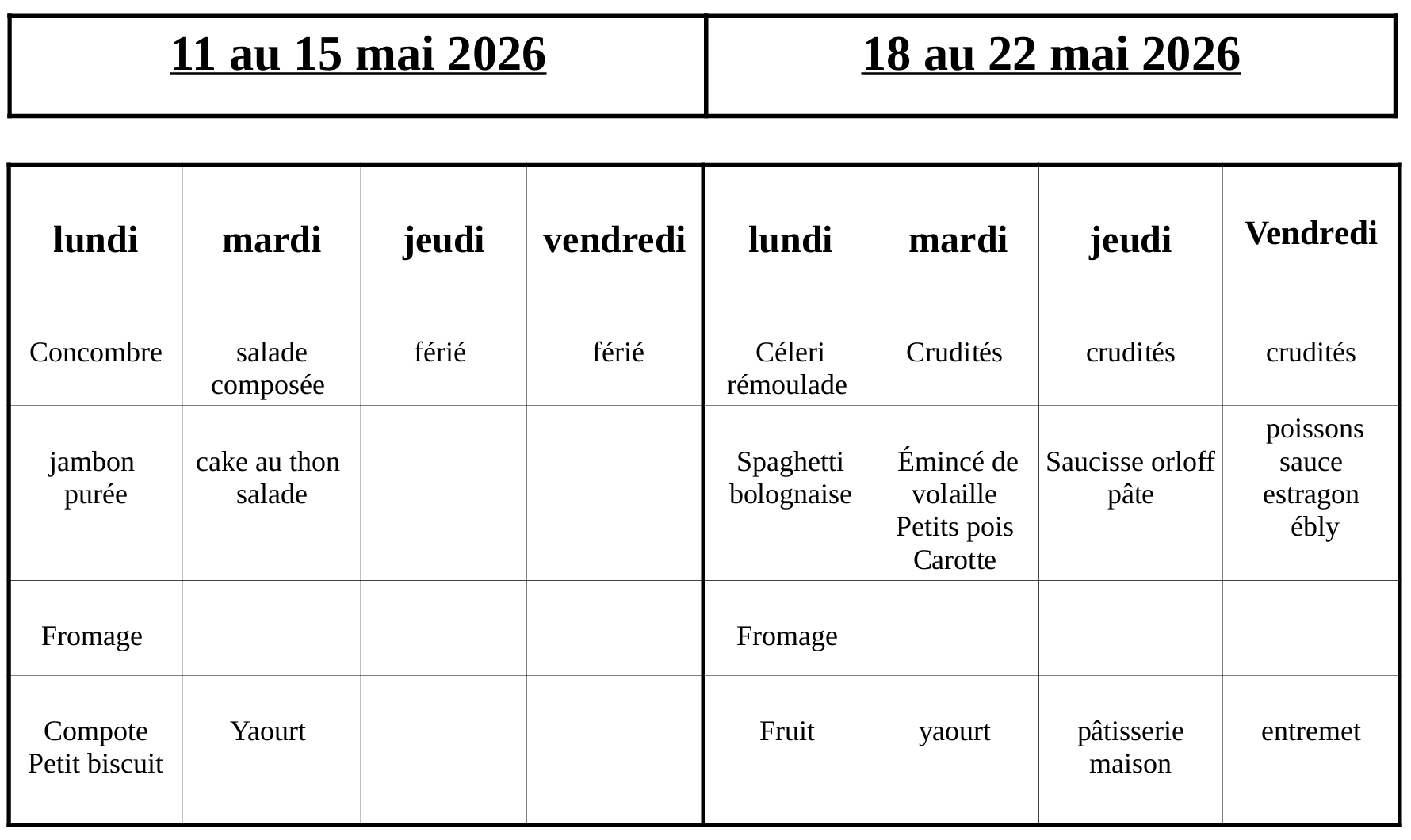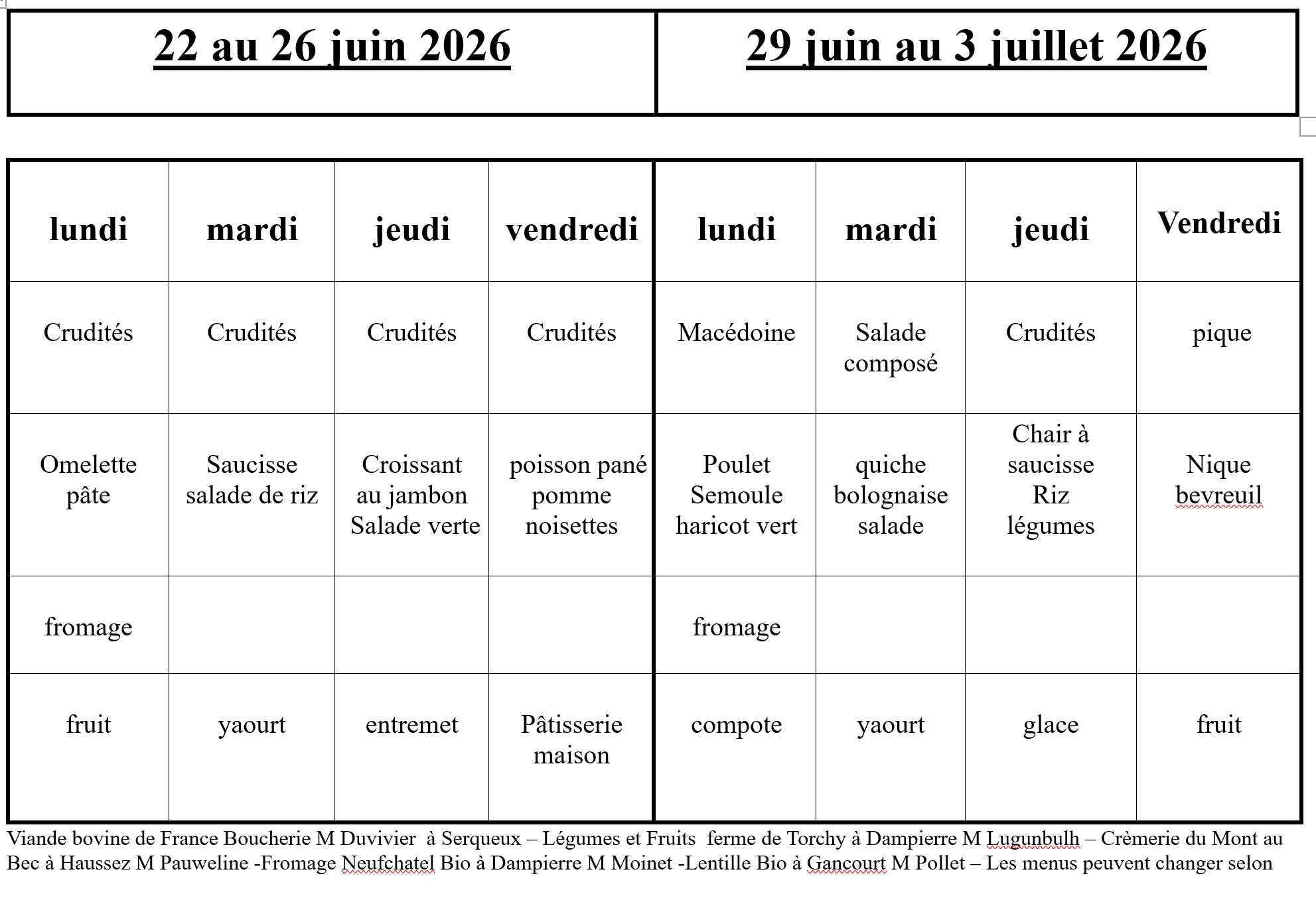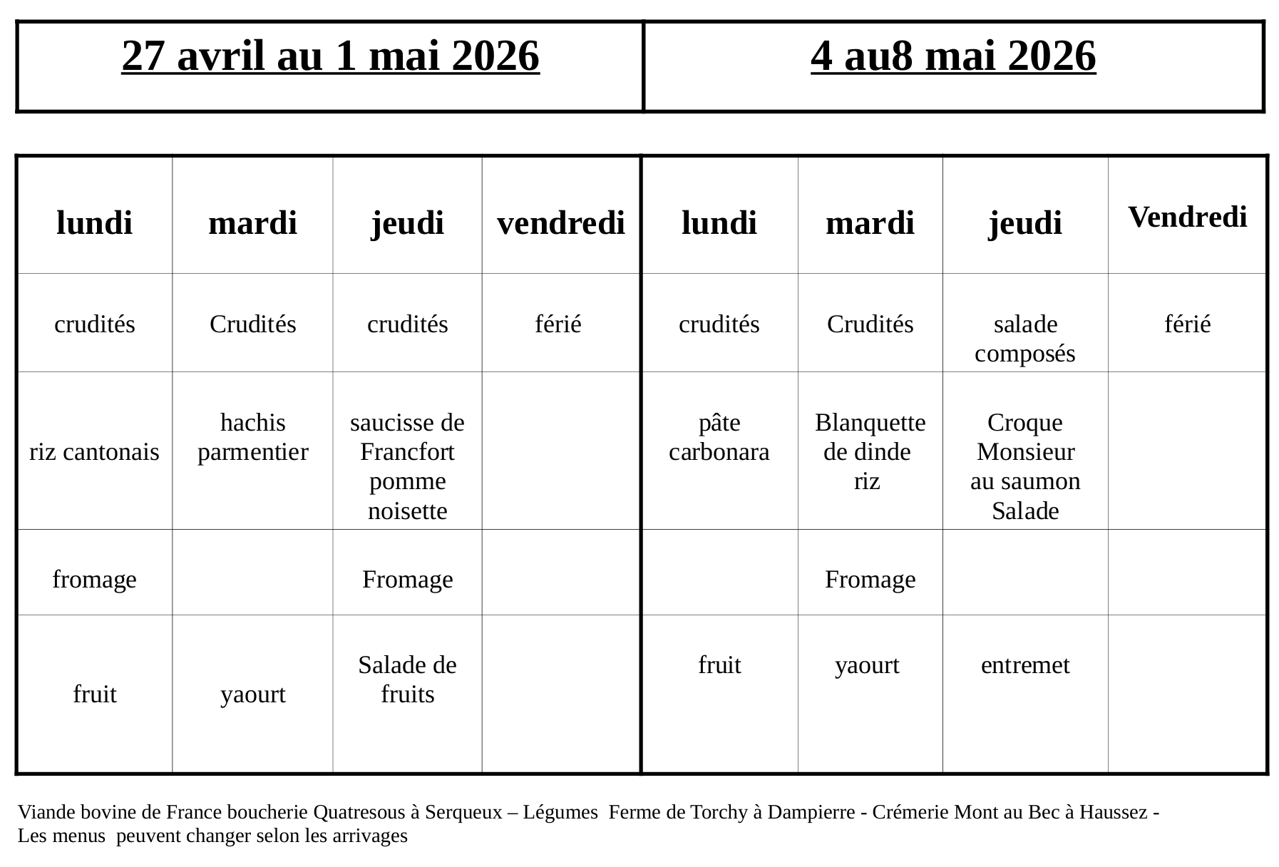 Découvrez le menu du mois...