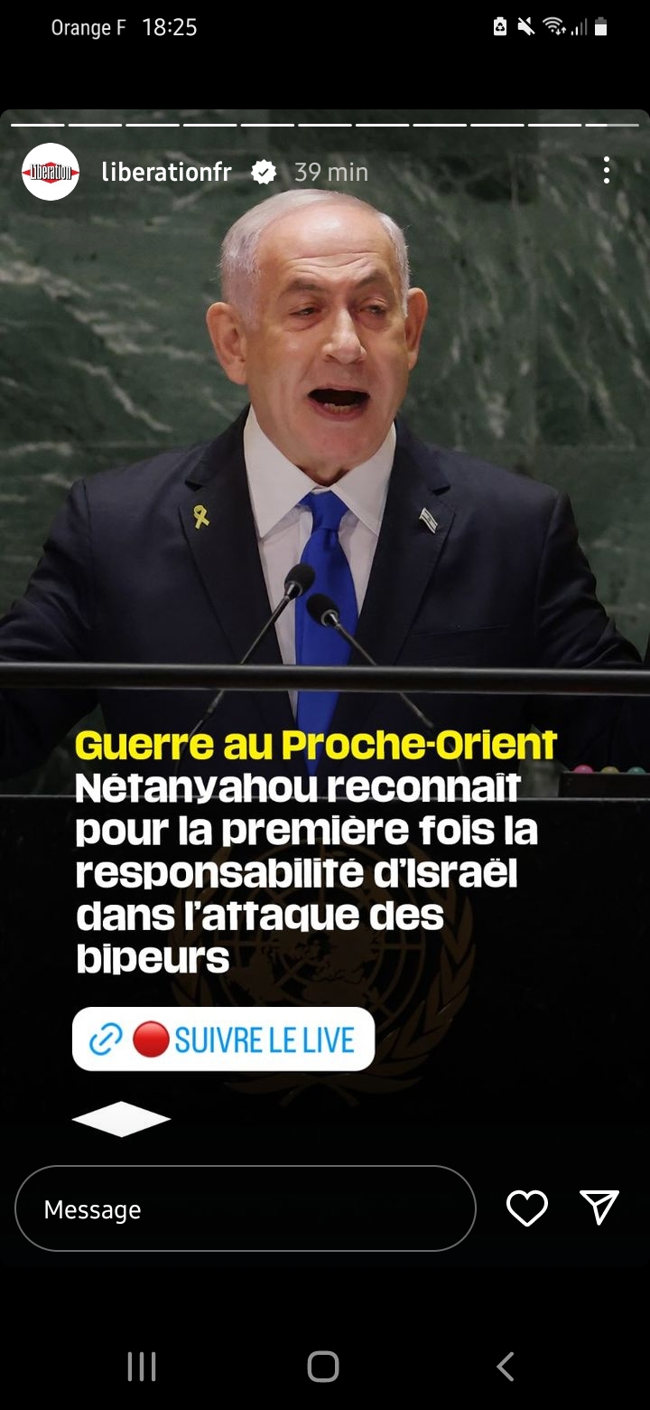 [Emma] OK, donc là, c'est une story du journal Libération et c'est sur la guerre au Proche-Orient. [Prof Doc] Et c'est sur quelle plateforme? [Emma] Toujours Instagram. OK, en fait, ils mettent des stories tous les jours. Et du coup, là, par exemple, ils mettaient vous pouvez suivre le live en direct. [Prof Doc] Ça vous arrive de suivre des lives de médias ? [Emma] Assez régulièrement. [Prof Doc] Et vous contribuez sur les lives ? [Emma] Non, je regarde ce qui se dit. [Prof Doc] D'accord. [Emma] Et des fois, comme les gens peuvent poser des questions dans les commentaires, tout ça. On peut voir aussi les interactions, comment les journalistes répondent, tout ça. [Prof Doc] Vous en posez vous, de temps en temps ? [Emma] Non, pas trop.