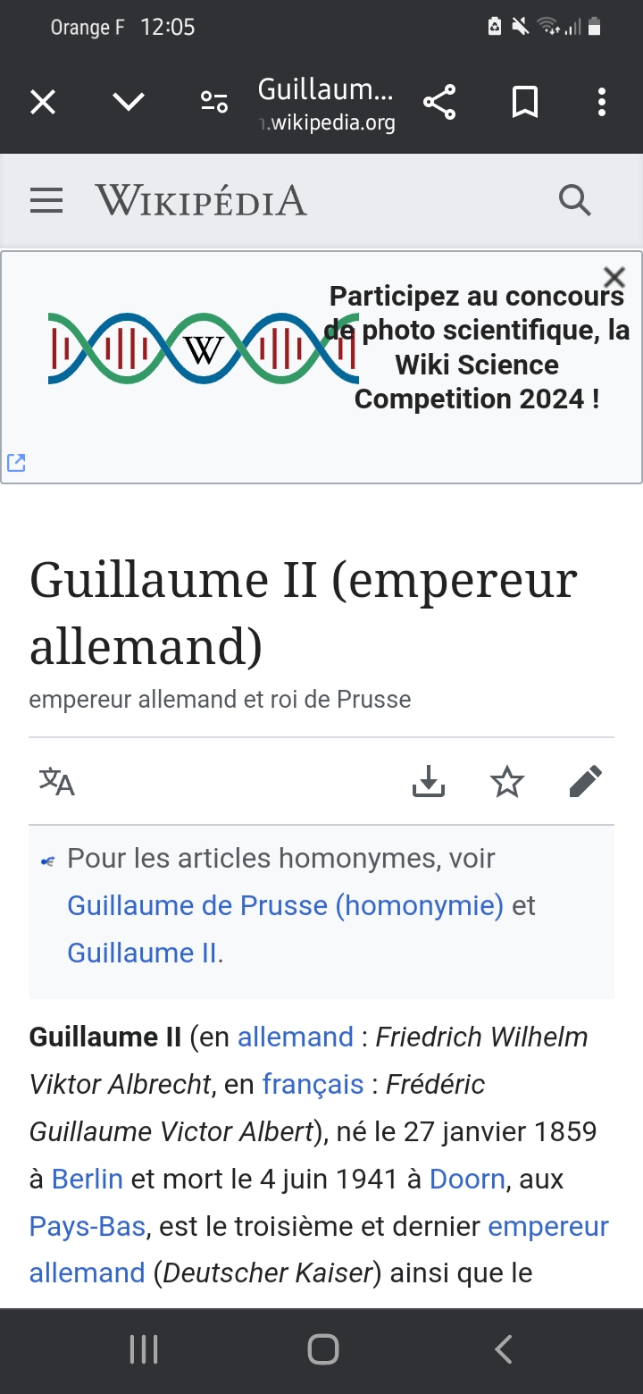 [Prof Doc] Donc là, on est sur une capture d'écran de Wikipédia. Alors expliquez nous. [Emma] En fait, là, c'était pour mes devoirs. Du contrôle d'histoire. Et je voulais savoir les dates de règne de l'empereur Guillaume II. Et du coup, je suis allée sur Wikipédia parce qu'ils mettent directement les dates. [Prof Doc] Oui, et ici vous vous faites globalement confiance. Vous y allez... [Emma] Je vais souvent pour regarder les dates de naissance, les dates de décès. Et du coup, bah là, les dates de règne de Nicolas II. Mais par exemple quand c'est des trucs qui peuvent faire polémique, des fois je peux lire mais avec du recul parce que on sait pas qui a écrit et si c'est une personne qui.... par exemple dit qu’il faut plutôt suivre cette opinion plutôt qu'une autre. [Prof Doc] Et après votre deuxième action c'est quoi ? mis à part prendre du recul, qu'est-ce que vous faites dans ces cas-là ? [Emma] Des fois en fait ils mettent leur source et du coup je vais vérifier. Par exemple si c'est… s'ils mettent un truc que je trouve un peu bizarre et après ils mettent le petit chiffre à côté [la note de bas de page ndlr], du coup je clique dessus et ça m'emmène directement sur la page où ils ont vu l'information et du coup je peux lire la page. [Prof Doc] D'accord, ok. Donc vous évaluez les informations à partir des sources qui sont citées dans l’article Wikipédia, d'accord. |
