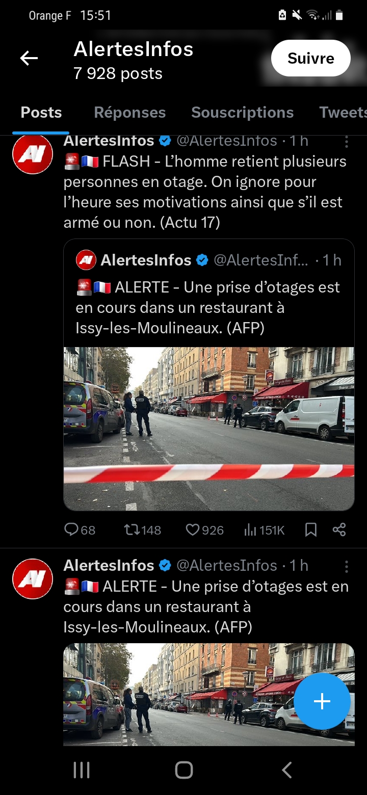 [Emma] Donc là c'est sur X. Et donc en fait je reçois souvent, je suis pas abonnée mais je reçois souvent des notifications parce que je vais de temps en temps. Donc ça s'appelle Alerte info. Et en fait ça dit l'information dès qu'elle tombe et ça met la source à côté. Donc des fois je vérifie pas tout le temps. Mais du coup je prends ça un peu avec du recul et puis après je revois ça dans le résumé de la journée. [Prof Doc] Pour voir si ça a été repris [ailleurs]. Mais vous aimez bien avoir cette idée de l'instantané. [Emma] Oui parce que là ça tombe tout de suite sur le moment. [Prof Doc] Oui l'instantané. D'accord. À part Alerte info, vous suivez d'autres comptes un peu comme ça sur X ? [Emma] Non moi je regarde pas trop. [Prof Doc] X ? Non. D'accord. C'est juste qu'en fait vous voyez qu'il y a une notification. [Emma] Ouais quand j'ai une notification qui m'intéresse bah je vais. |