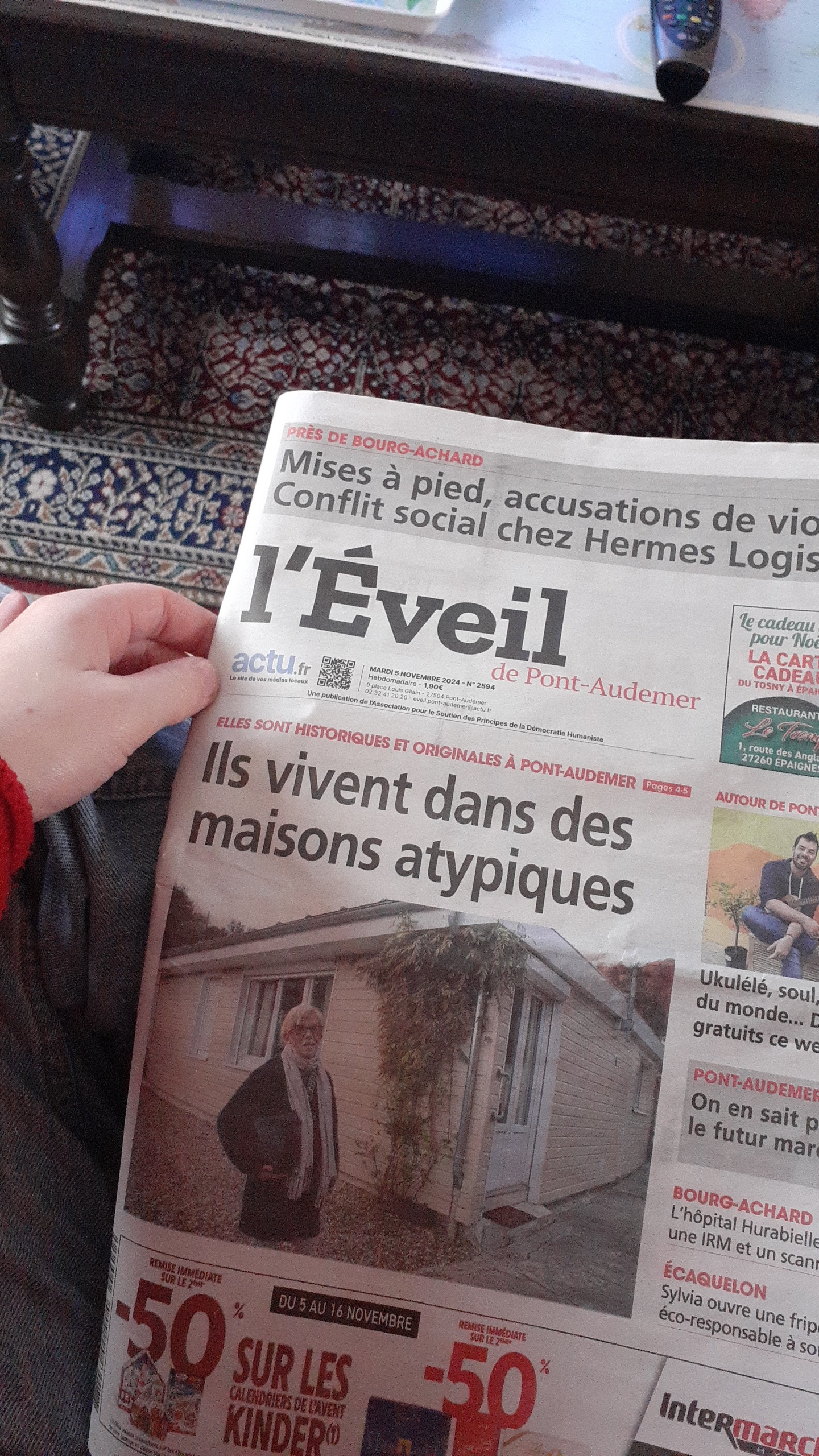 [Emma] Après, ça, c'est L'Eveil [de Pont-Audemer] [Prof Doc] Donc, là, on vous voit lire le journal. C'est pareil, j'ai l'impression qu'on est chez vous. [Emma] Oui, toujours. En fait, après que j'ai terminé le 13h, je lis L'Eveil. Des fois, je lis en même temps aussi. Ça dépend des fois. [Prof Doc] Ok, donc ça, c'est la presse régionale hebdomadaire. Vous êtes abonnée à L'Eveil ? Ou vous l'achetez... [Emma] Non, je crois que c'est abonné. [Prof Doc] Vous le recevez dans la boîte aux lettres ? [Emma] Oui, je crois. [Prof Doc] Et vous faites ça en même temps, c'est ça ? Vous dites, vous lisez ? [Emma] Oui, des fois, en même temps, ou juste après, quand le 13h, il est fini, je commence à lire ça. [Prof Doc] D'accord. Et qu'est-ce qui vous intéresse dans L'Eveil, par exemple ? [Emma] Savoir l'actualité qui se passe aux alentours et pas juste mondialement ou juste en France. [Prof Doc] Donc, à plusieurs échelles. [Emma] Oui, et puis, du coup, ça me concerne aussi directement vu que j'habite là. [Prof Doc] Oui, ok. Merci. [Emma] Donc là, c'est la page de L'Eveil pour montrer que c'était L'Eveil. [Prof Doc] Oui, d'accord, la source. |