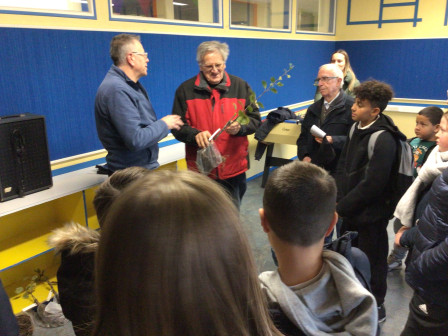 Comme tous les ans, les élèves de sixième sont venus chercher les pommiers qu’ils avaient greffés l’année dernière grâce aux membres de l’association des greffeurs de pommmes.