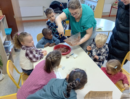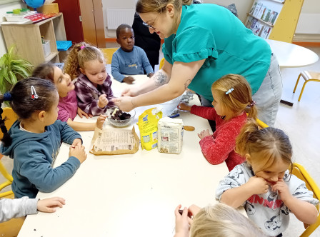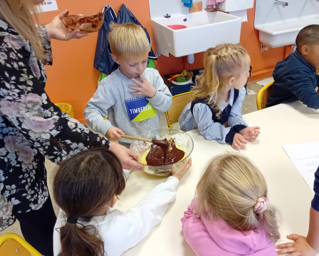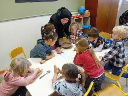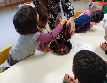 Le matin, les mamans sont venues nous aider à cuisiner des gâteaux au chocolat.