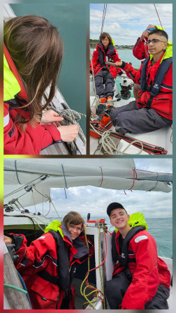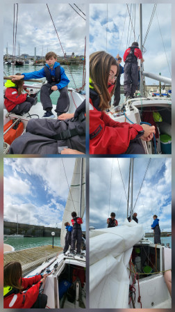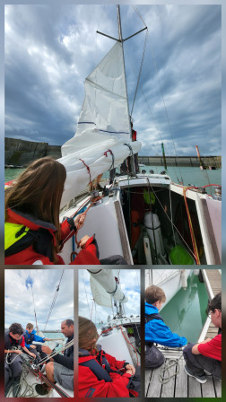 On est retourné au voilier le matin et l'après-midi chacun notre tour. La mer était agitée, il y avait pas mal de vagues. Du coup, on en a profité pour hisser les voiles. Une fois sorti du port, on les a gonflés ou réduites pour avancer plus ou moins vite. On a aussi fait quelques manoeuvres. Certains ont eu le mal de mer mais personne n'a vomi. Pour faire tenir le voilier on a fait des noeuds de taquet.
