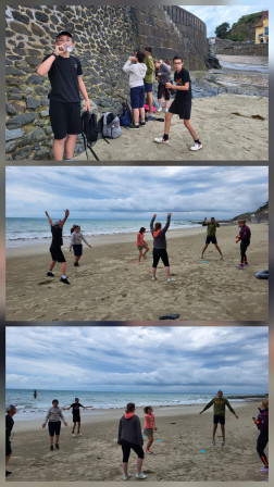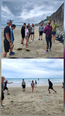 Ce matin, nous avons fait des petits jeux sportifs avec une éducatrice sportive: Fantine. On devait suivre un parcours, attaquer les bleus ou les jaunes selon l'équipe dans laquelle on était, on devait reproduire les gestes de Fantine. Ca nous a bien plu. Entre temps, on a aussi commencé à ramasser les déchets sur la plage de Granville.