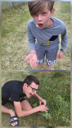 Pendant que certains étaient au bâteau, d'autres ont été se balader à Régneville. On a d'abord voulu voir s'il y avait des phoques, on en a vu mais ils étaient loin, ils étaient tout noir. On a découvert le nom de nouvelles plantes: du liseron (rose/violet), du sédum, du chardon(panicaut de mer) ouille ouille ouille ça pique, et du jonc. On a aussi vu des crottes de lapins et de moutons que certains ont vu de très près trop drôle. On a même retrouvé des algues car des fois quand c'est les grandes marées, elles passent par dessus les dunes.