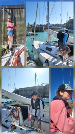 Sur Chiquita, on a appris à se garer en manoeuvrant le gouvernail et les vitesses. On a sorti les voiles mais on les a aussi rangées. On est sorti du port pour hisser les voiles et faire un petit tour. Sur le mur de l'entrée du port, il y a une horloge numérique pour nous donner la hauteur d'eau et savoir s'il l'on peut sortir ou entrer dans le port. On a réussi à amarrer le bâteau.