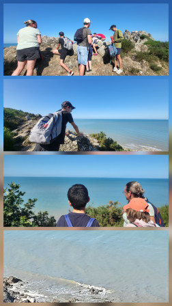 Ce matin un groupe est parti à la voile sur le bâteau chiquita et l'autre groupe faire une randonnée à la vallée du lude à Carolles.On a marché sur un sentier où il y avait pleins de gros cailloux et on a monté beaucoup de marches pour arriver tout là-haut. Ca donnait le vertige à certains mais la vue était magnifique. On voyait les îles Chausey, Cancale, un bout de la bretagne... On a aperçu en contre bas de la falaise des phoques. On a découvert de nouvelles plantes et aussi du houx et des déjections d'oiseaux ou d'autres animaux. c'était beurk mais on a su qu'il avait mangé des cerises vous verrez sur la photo. On a été voir la cabane Vauban et devant il y avait le Mont Saint Michel. En redescendant on a longé le cours d'eau, on a joué aux équilibristes et on a sauté dans une flaque d'eau. Il faudra retrouver à qui sont les jambes pleines de terre.