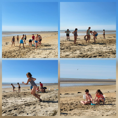 Pendant ce temps, d'autres ont reproduit le Mont Saint Michel avec du sable mais on a surtout fait une longue bataille d'eau au bord de la mer. Les adultes ont aussi été bien mouillés.