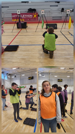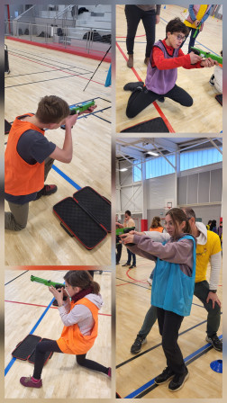 Nous avons participé à la journée du Téléthon en faisant des activités sportives dans le gymnase du collège. Il y avait des jeux d'adresse, des jeux en équipes et un parcours de course en relai avec du tir au pistolet laser.