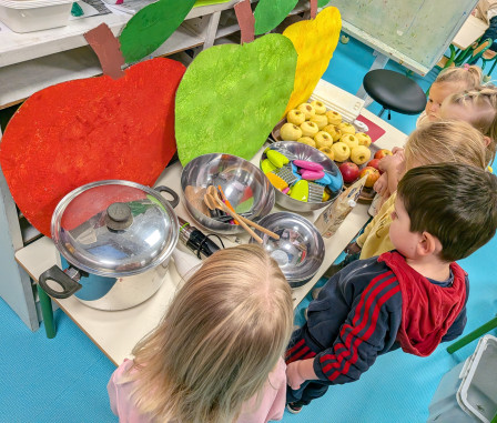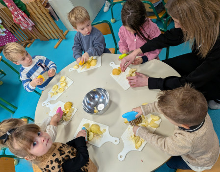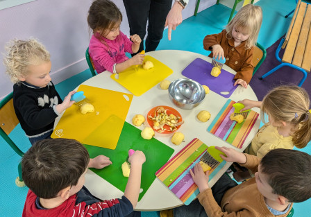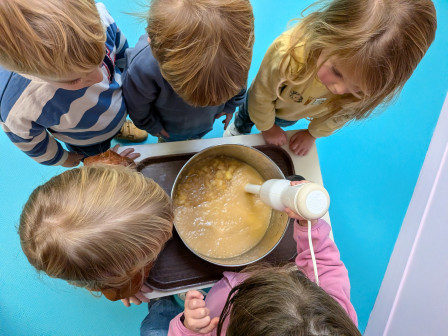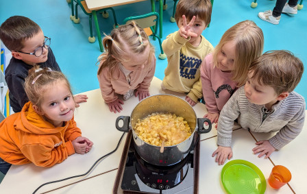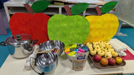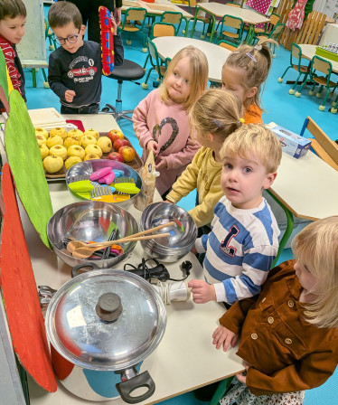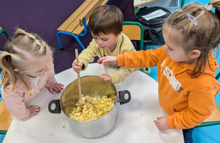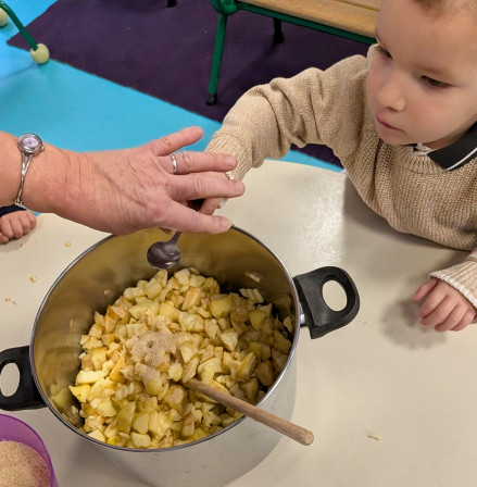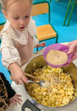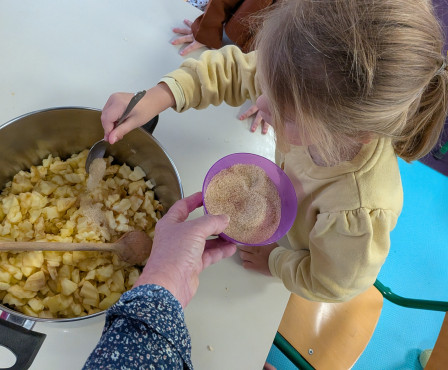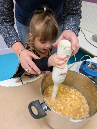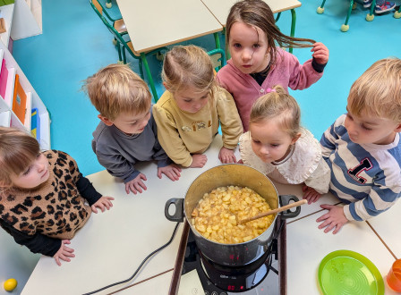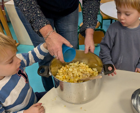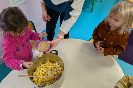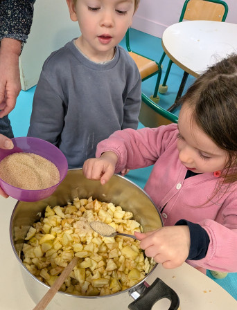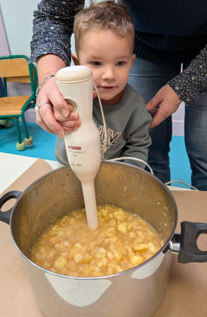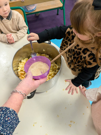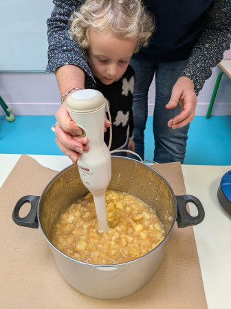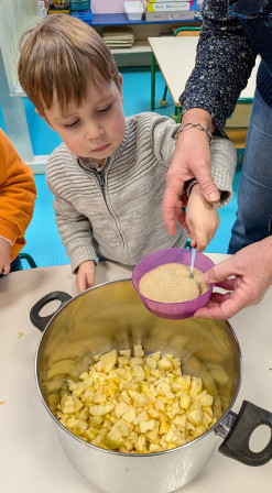 Pour la fête du "Plateau d'automne" avec les Moyens et les Grands, nous avons cuisiné une bonne compote de pommes.