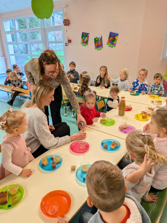 Les Moyens avaient préparé un délicieux jus de raisin, les Grands un excellent gâteau aux poires!
