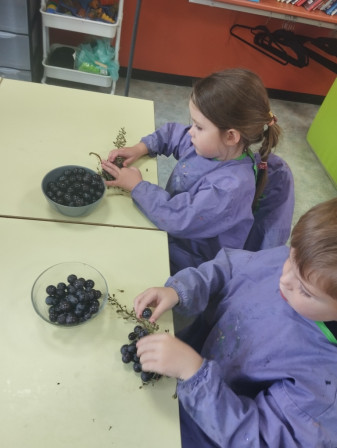 1. On a pris des grappes de raisin blanc et de raisin noir: