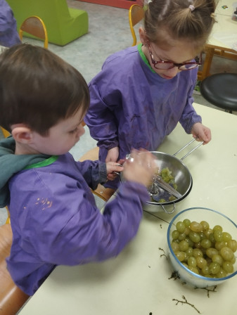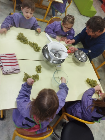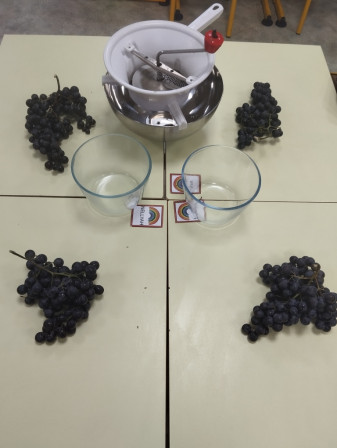 Lundi 24 novembre, nous avons fabriqué du jus de raisin en classe!
