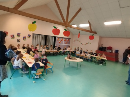 Nous avons fait un goûter d'automne tous ensemble, les petits avaient cusiné de la compote de pommes et les grands des gâteaux aux poires.