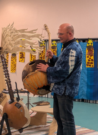 c'est l'ancêtre de la contrebasse. Il est fabriqué avec des calebasses et recouvert de peau de chèvre.
